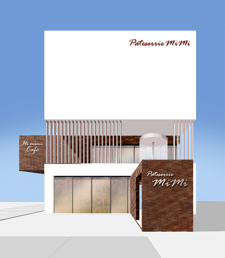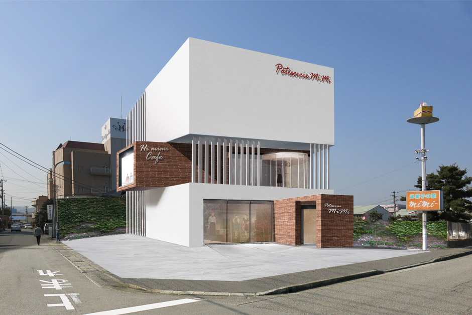 mimi Creative Fields PLANNINGArea 静岡県Produce Masaki TakayamaDesign iwasawa design + Etre Design 洋菓子屋店の立て替え計画。ホイップクリームとチョコレートをイメージさせる店舗の提案